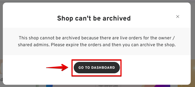 - Once the orders have expired, click "BACK TO SHOPS" and proceed with archiving the shop.