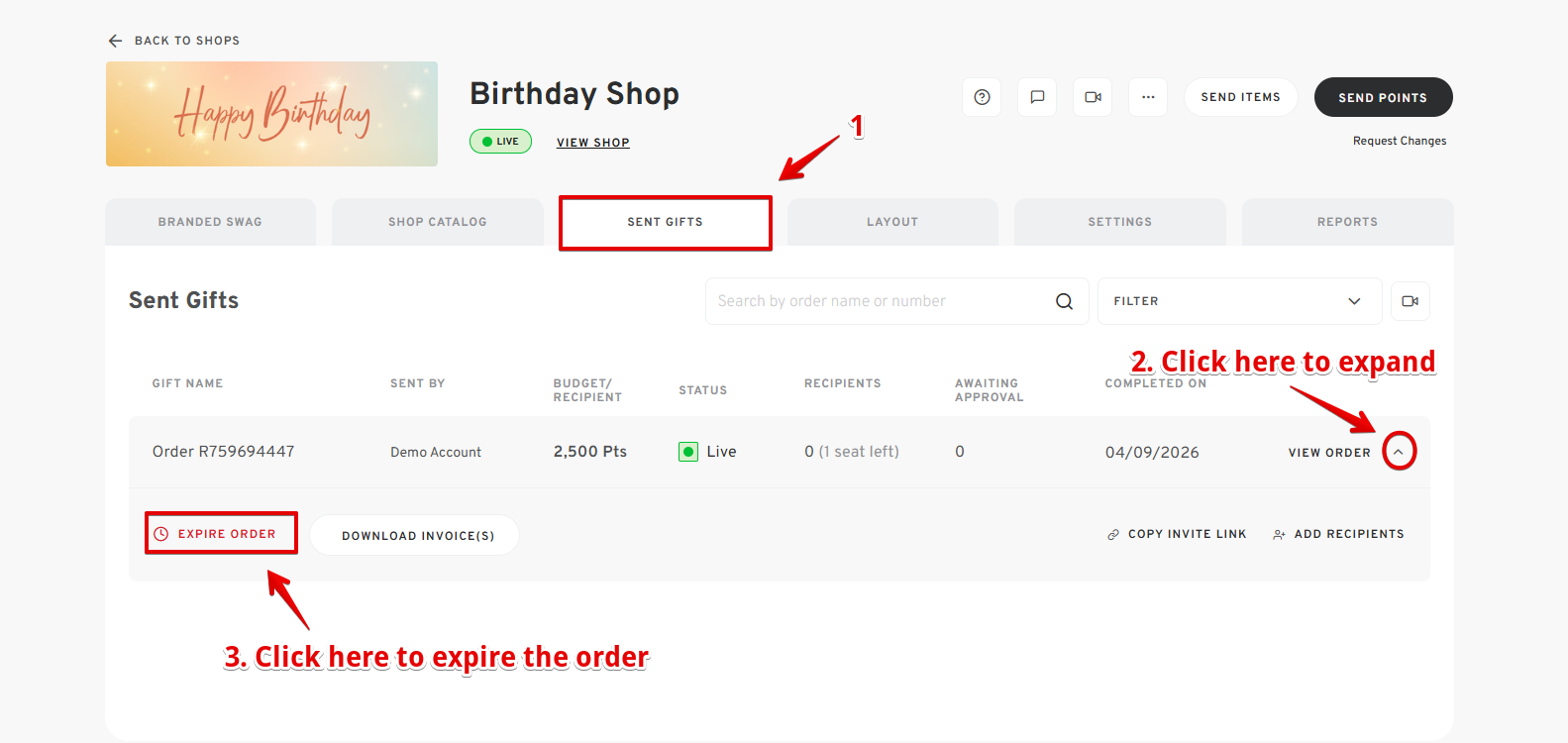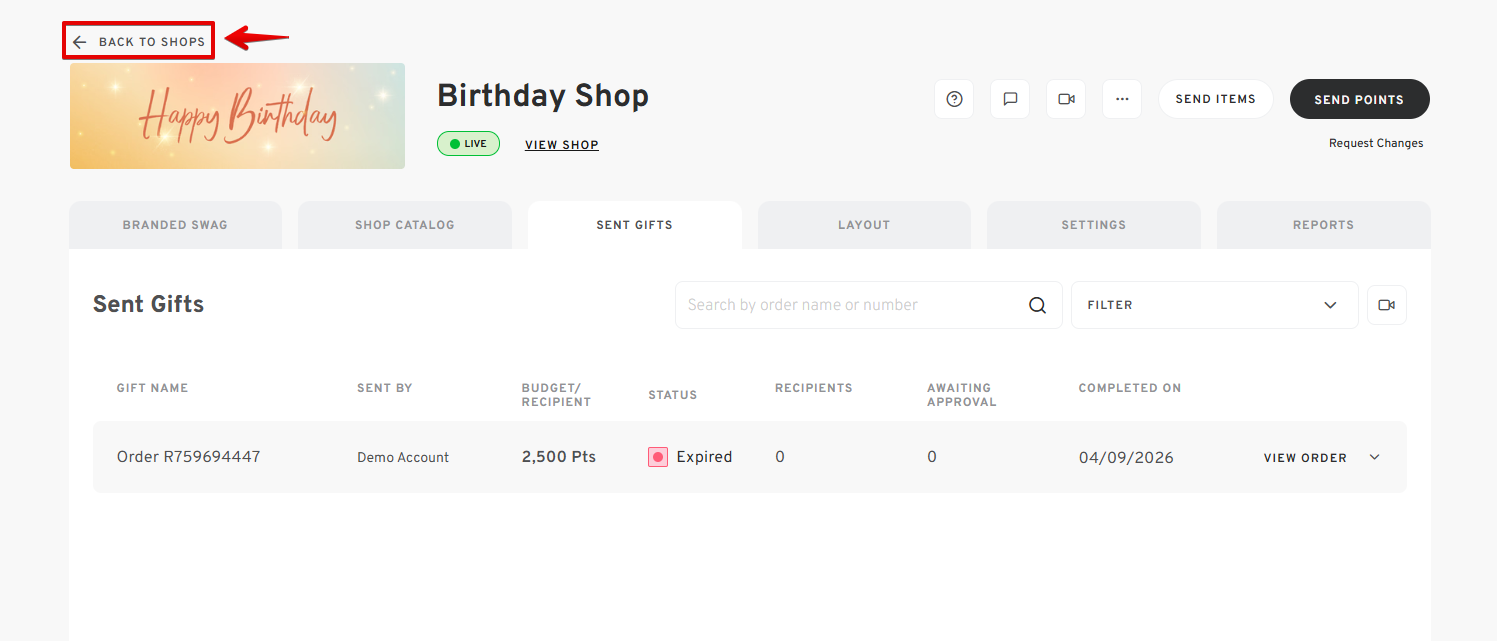 While shops don't technically expire, as the sender, you have full control over who is gifted through your shop orders. If you no longer wish to use your shop and would like to close it, you can archive it.