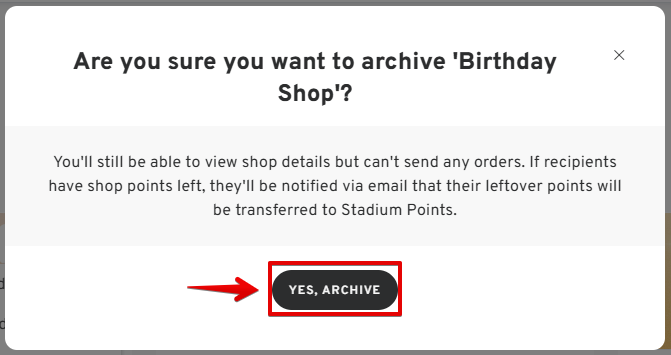 - Confirm your decision to archive the shop by clicking "YES, ARCHIVE" when prompted.