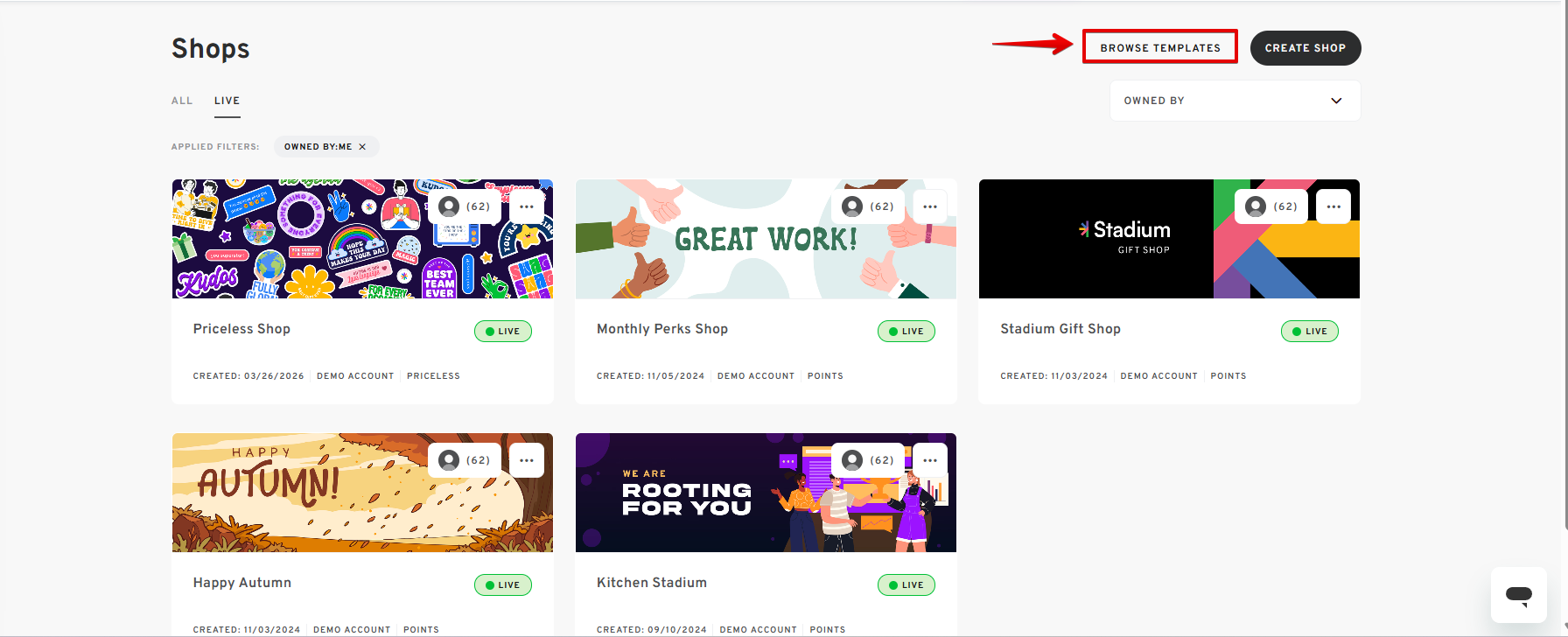 - From the Shops dashboard, click on the BROWSE TEMPLATES button found in the top right corner.