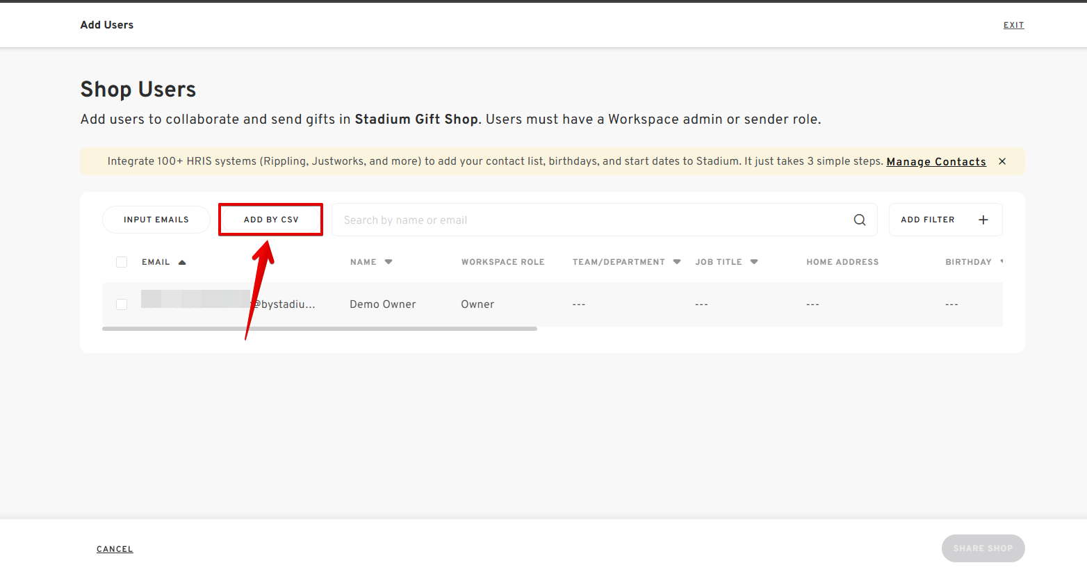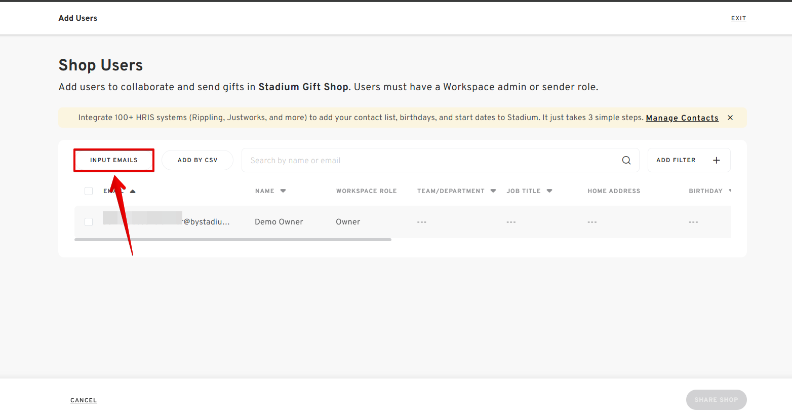 - Select "SHARED SHOP USERS" and click "ADD USERS."