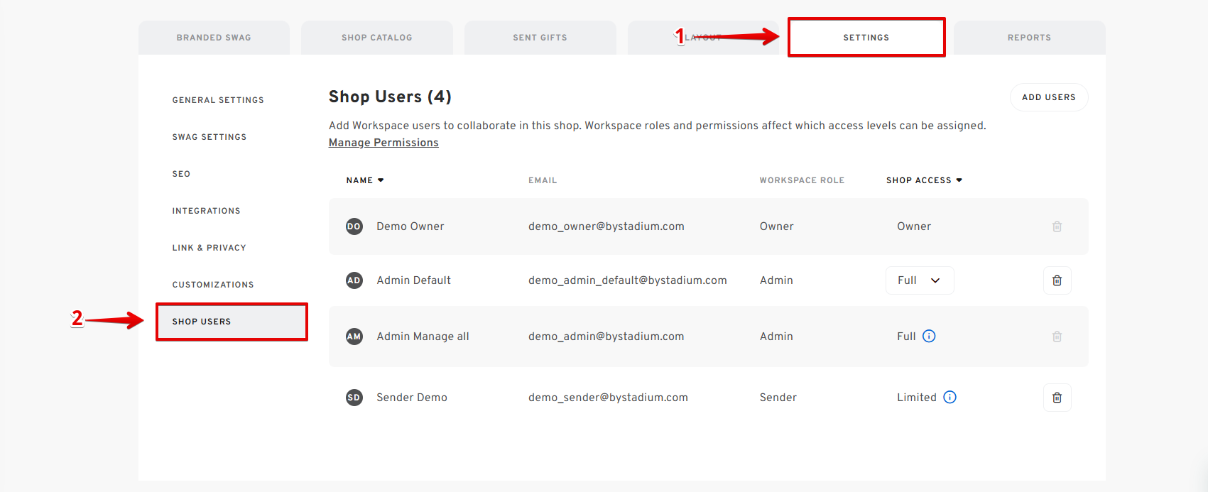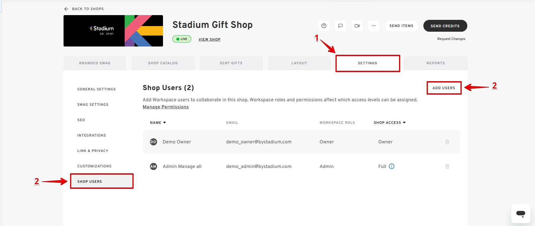 - Go back to your Shop Dashboard, then click SETTINGS, then click on SHOP USERS.