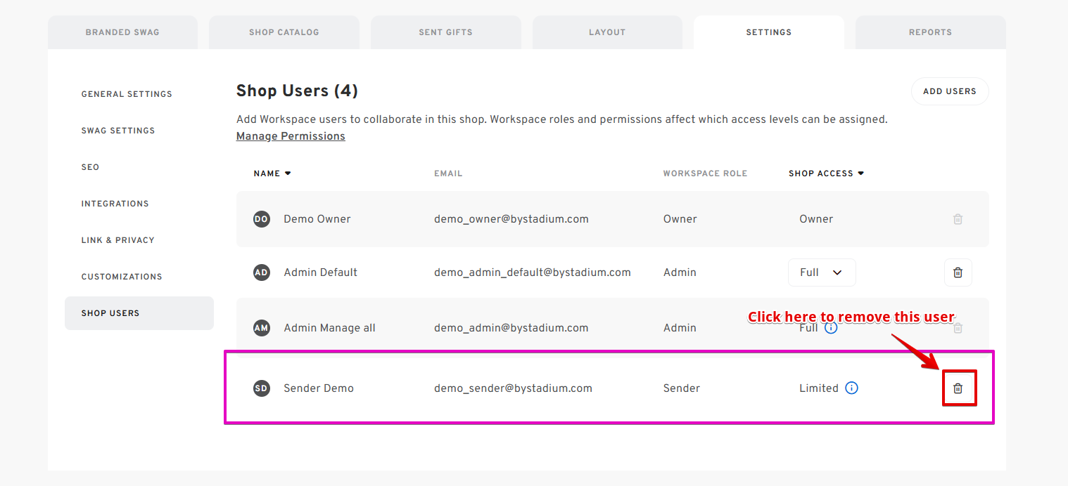 ❌ Removing Shop Users