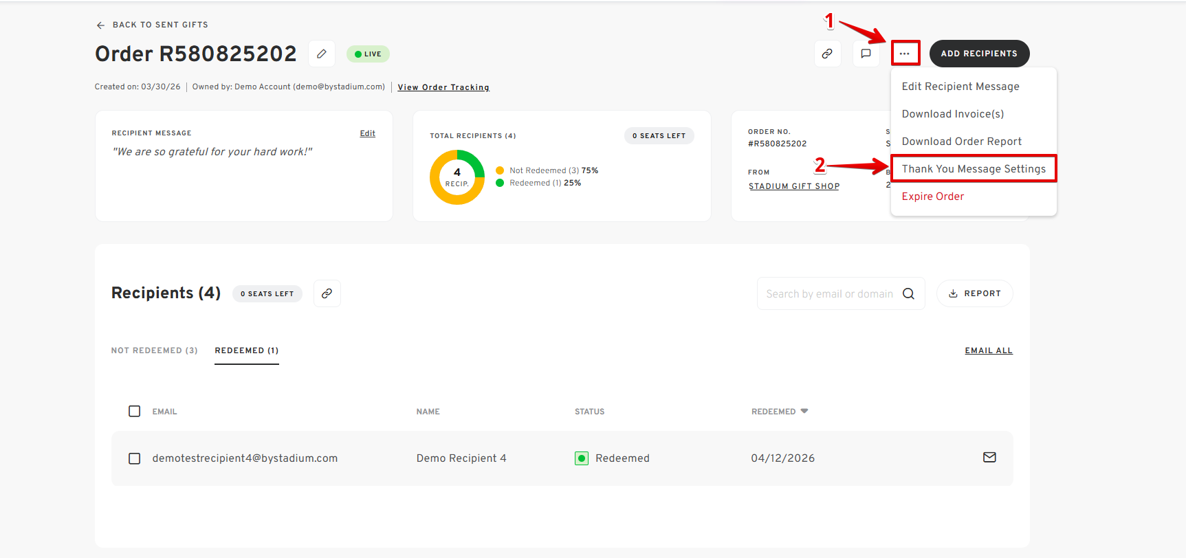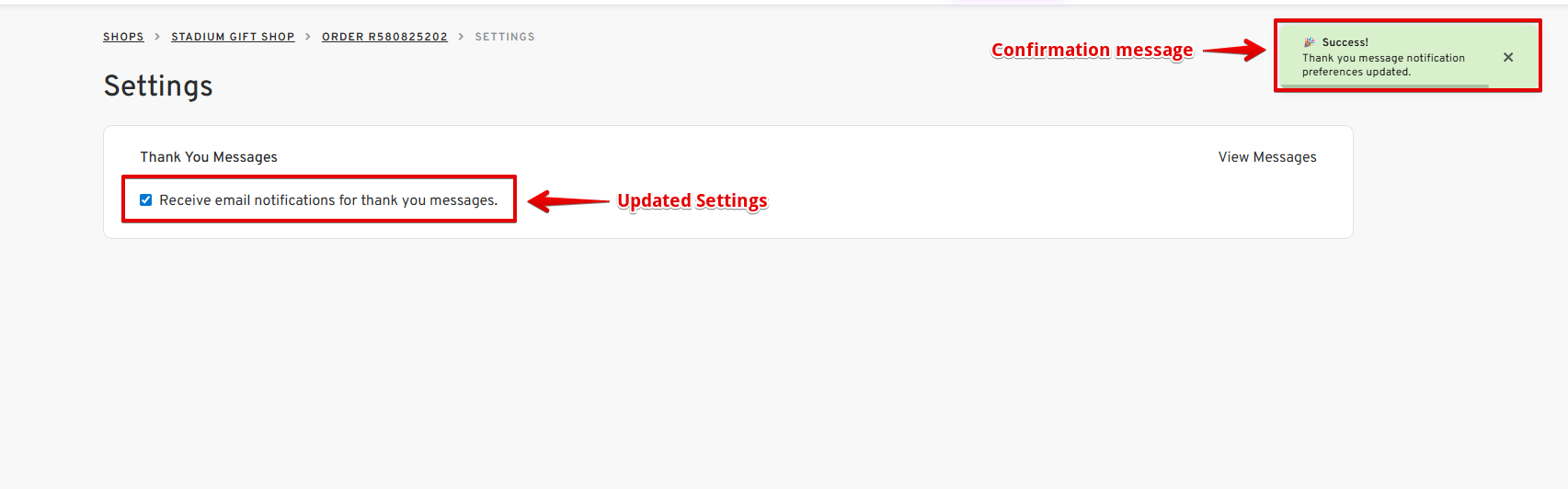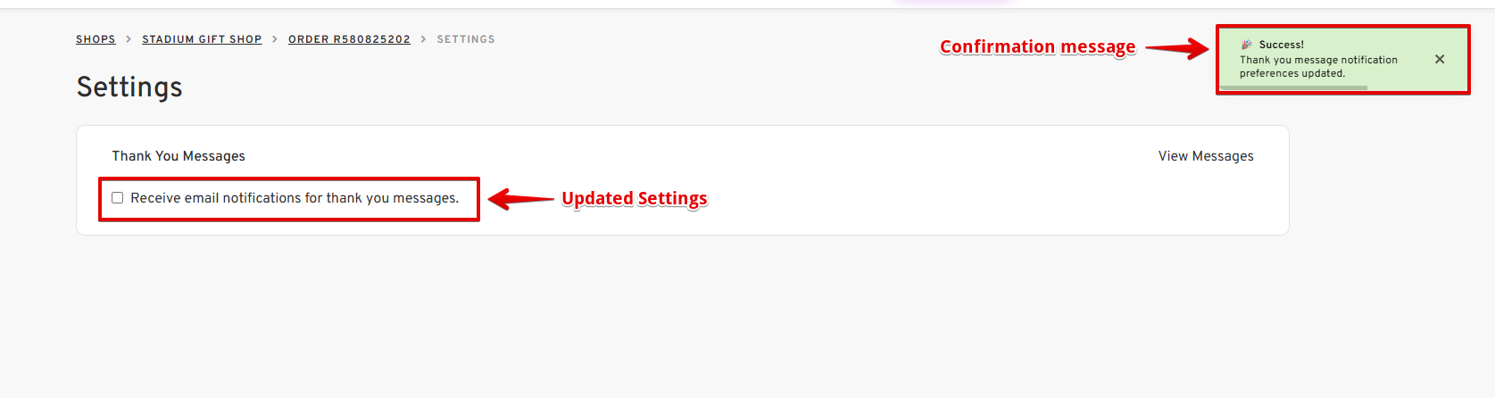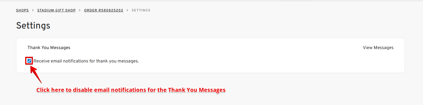 Managing notifications is essential to keep your inbox clutter-free. If you want to stop receiving email notifications for "Thank You Messages" from recipients of your Stadium Shops Gift Orders, this guide shows you exactly how to disable or enable thank you message notifications for your shop gift orders in just a few steps.
