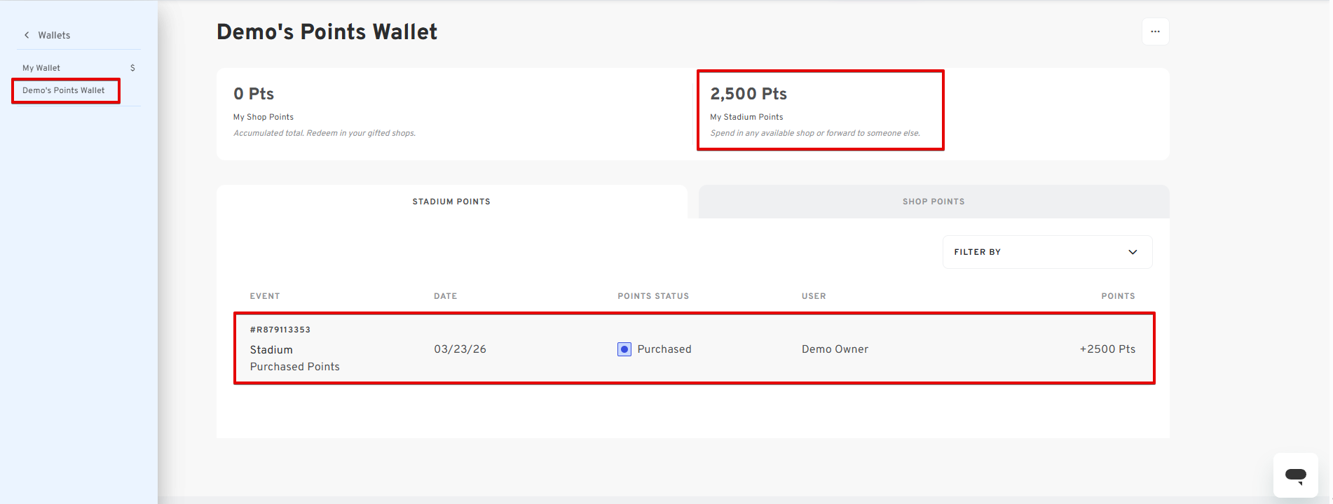 Steps to Purchase and Add Stadium Points from Your Personal Points Wallet