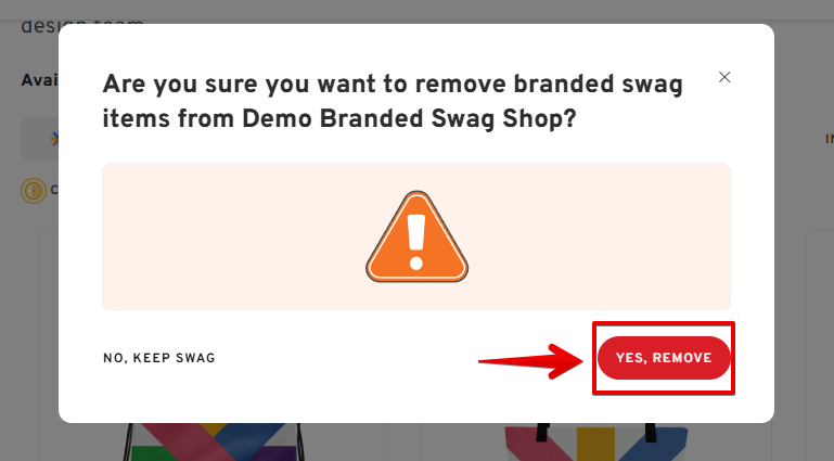 - Confirm your action to remove all swag items sharing the selected swag collection from your shop.