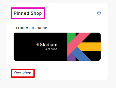 By default, you will see the STADIUM GIFT SHOP pinned in this section in both the Personal Workspace and Company Workspace. However, please note that the pinned shop can be changed if requested by the Workspace owner.