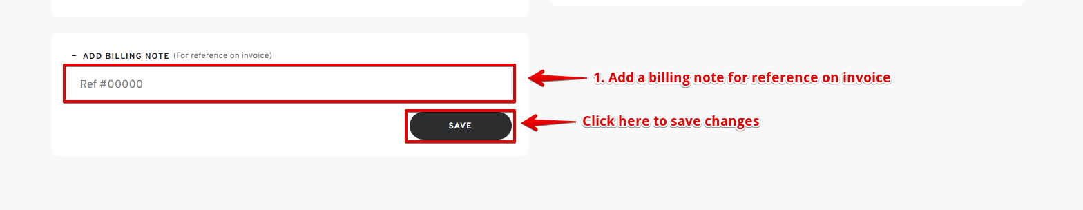 - Scroll down and add a billing note for reference on your invoice.