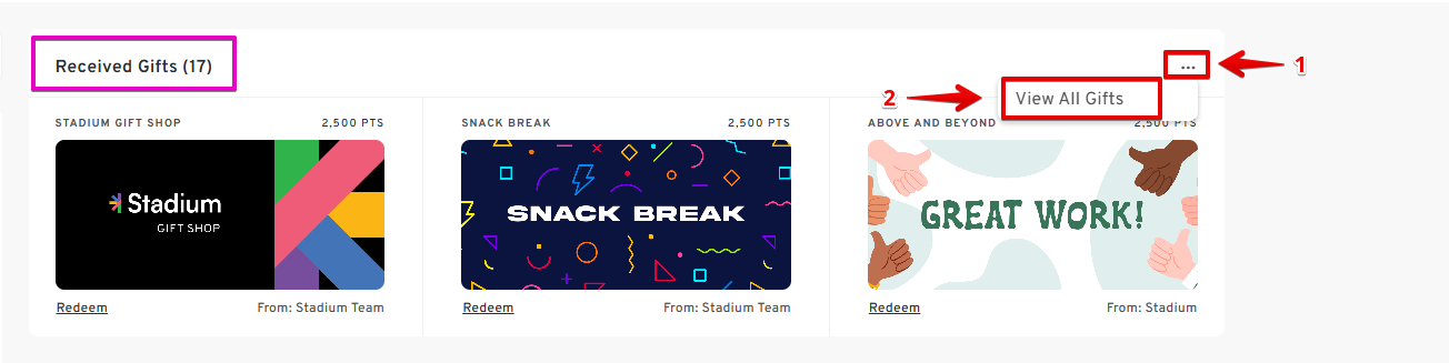 If there are multiple gifts, click on the three-dots menu (⋯) and select View All Gifts to see all available shop gifts.