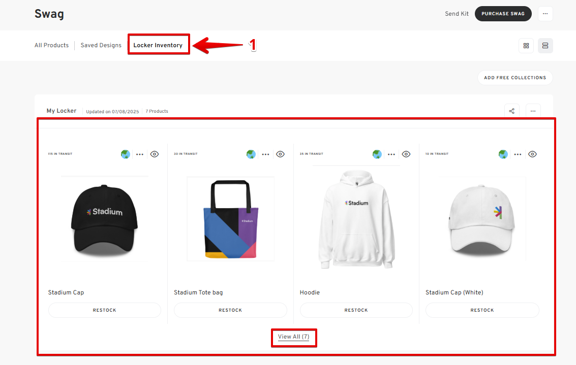 Access the Swag Inventory Feature with our paid Stadium Packages.