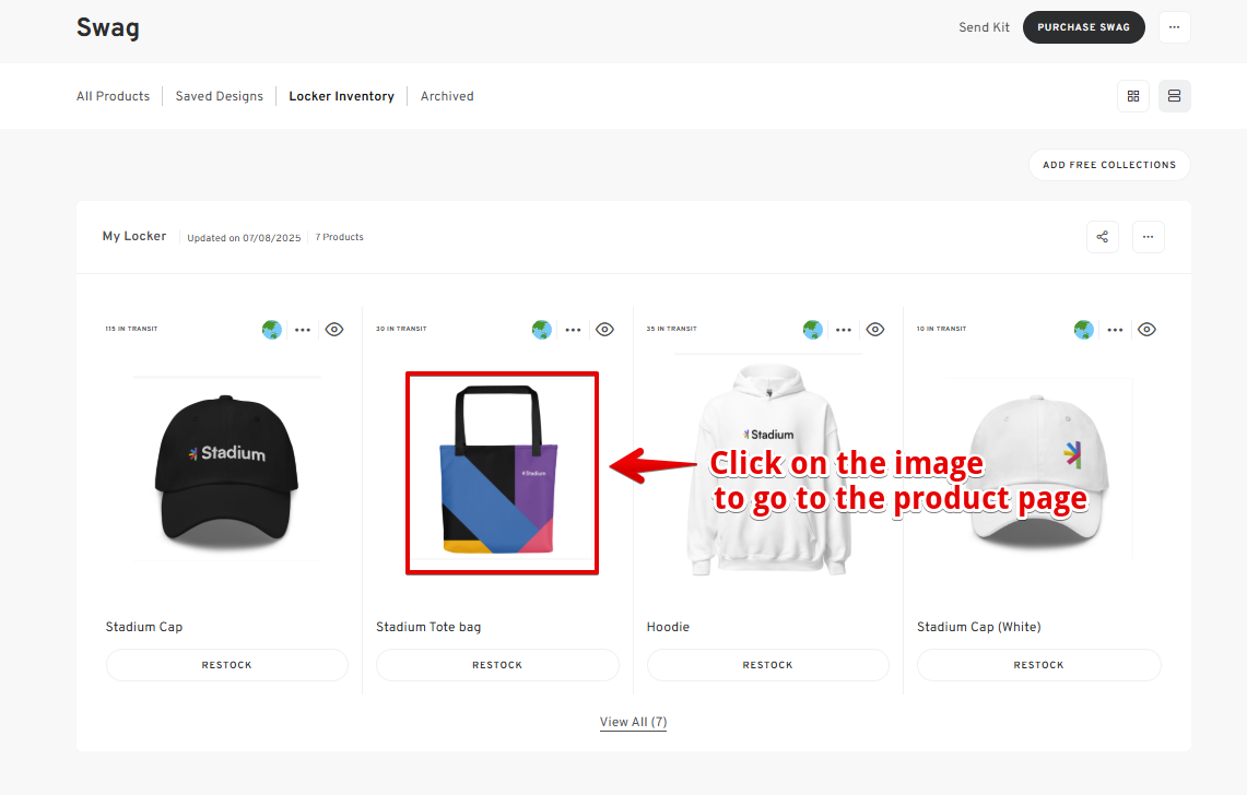 - Alternatively, you can also click on the swag image to go directly to the product page.