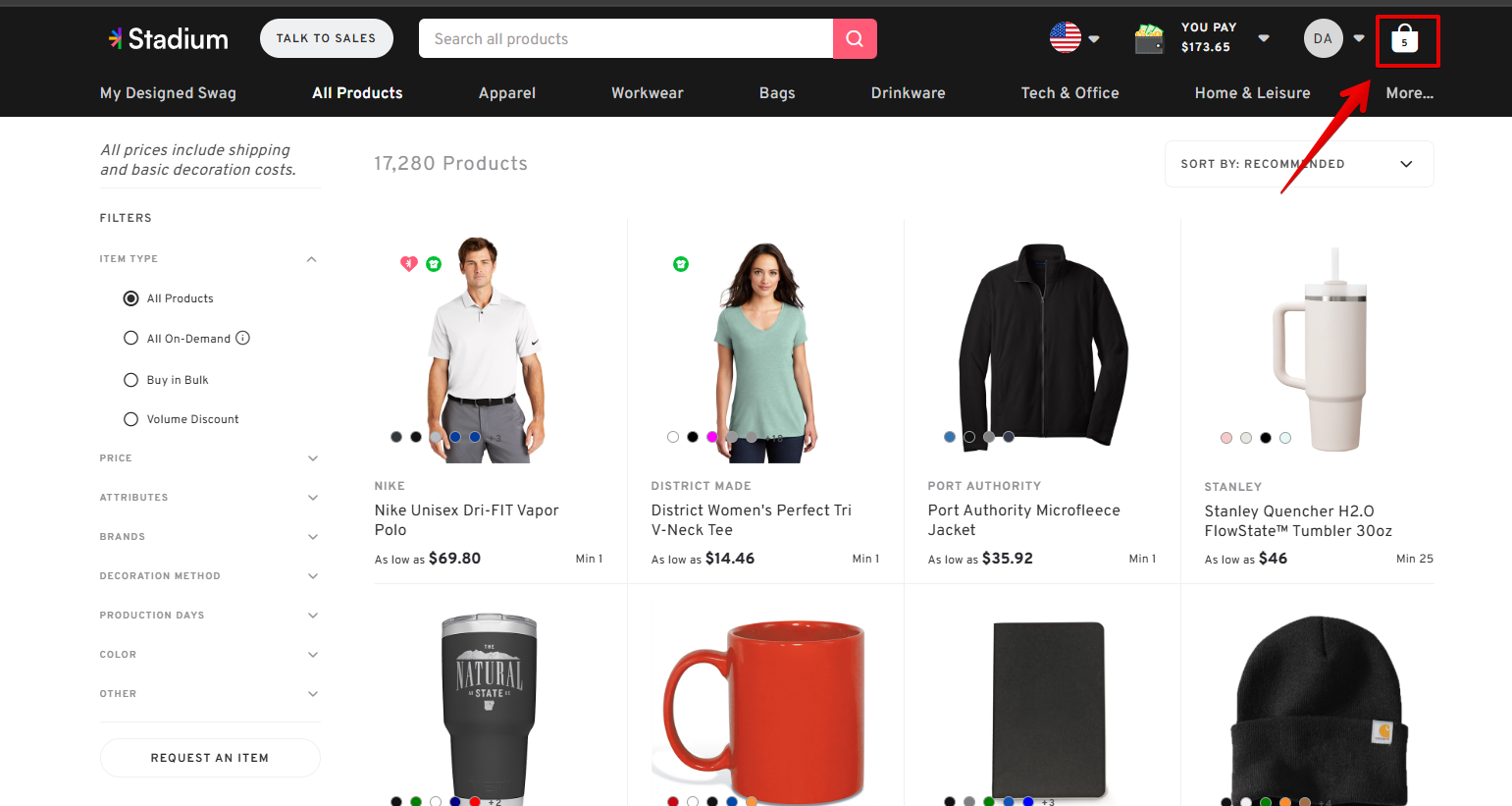 - Click the bag icon to view items in your cart.