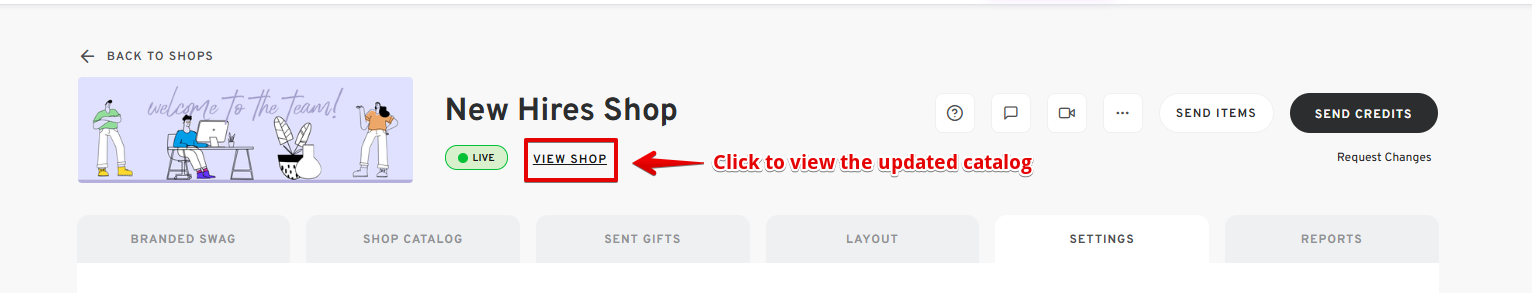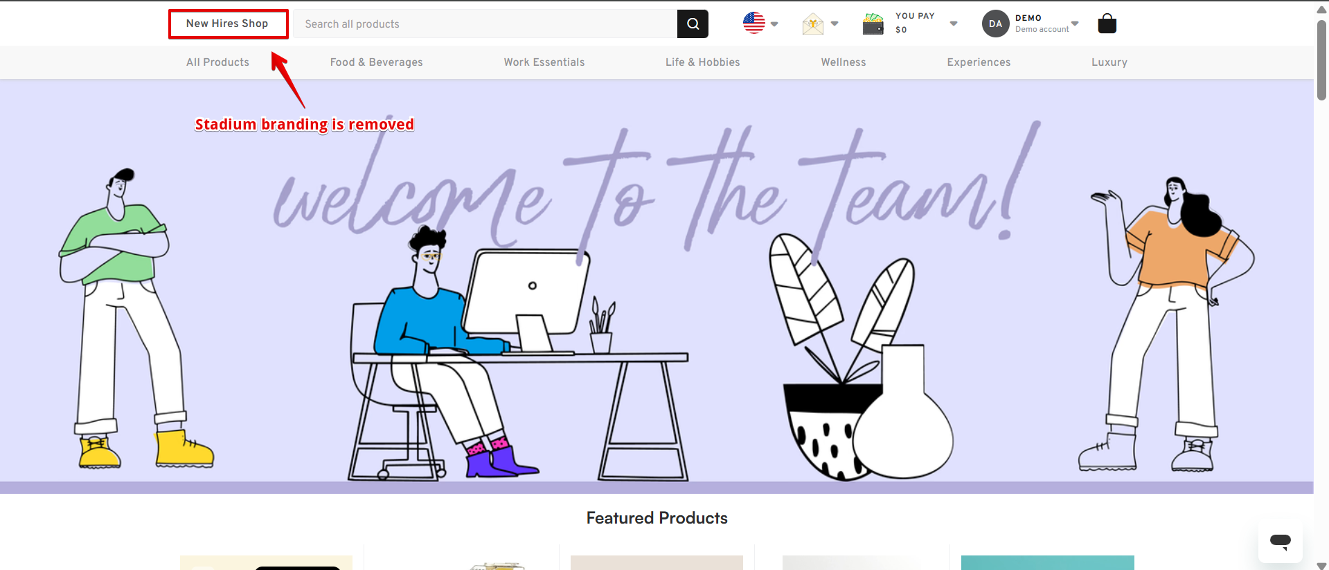 - To see how your shop looks without Stadium branding, click on "VIEW SHOP" in the menu.