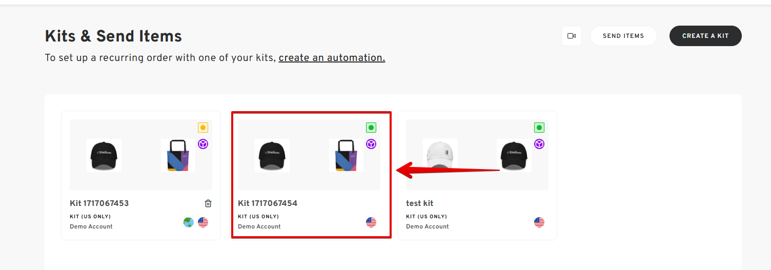 - In the sidebar menu, locate and click on "Kits & Items" to access your kits and send items page.