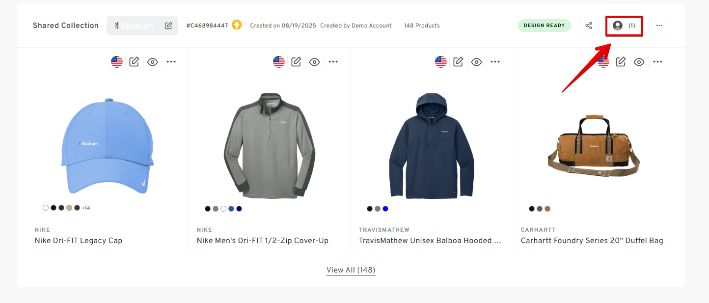 Need to share your swag designs with teammates or manage who has access to a swag collection? This article walks you through how to share a swag collection from your SAVED DESIGNS page and remove users when needed.