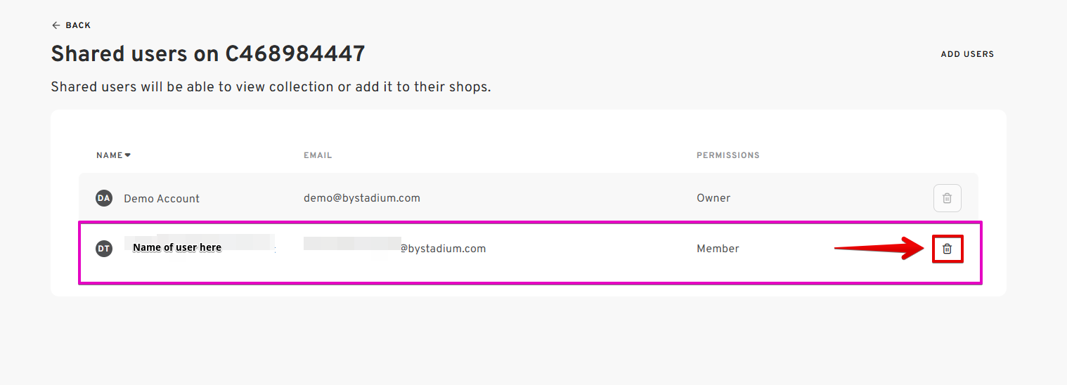 - After selecting the emails you want to share your collection with, click 'SHARE COLLECTION WITH (#) USERS.'