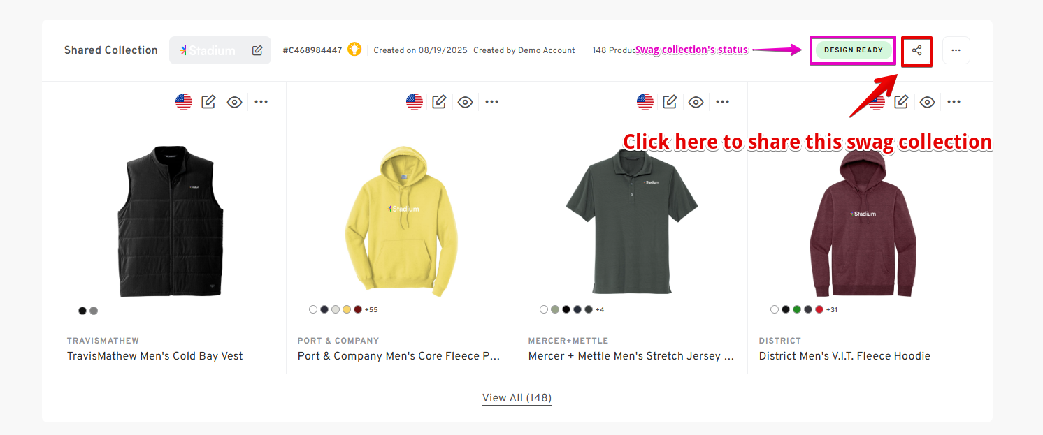 Note: Only collections with the "DESIGN READY" status can be shared.
