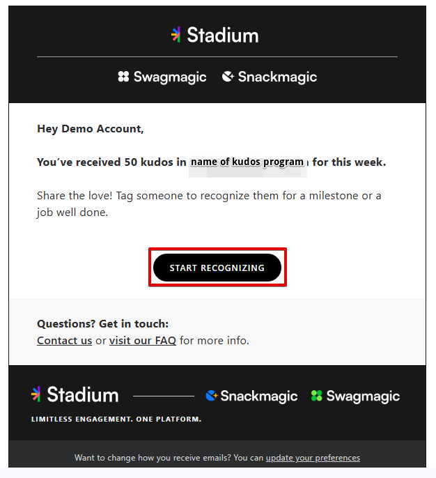 Ready to build a culture of appreciation? With Stadium’s Kudos Program, it's easy to redeem kudos and send recognition to teammates.