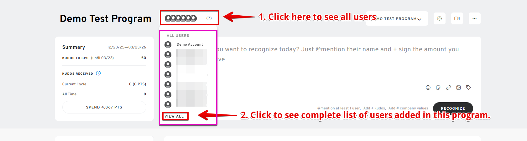 - If you're part of more than one recognition program, click the program name at the upper right to switch between them.