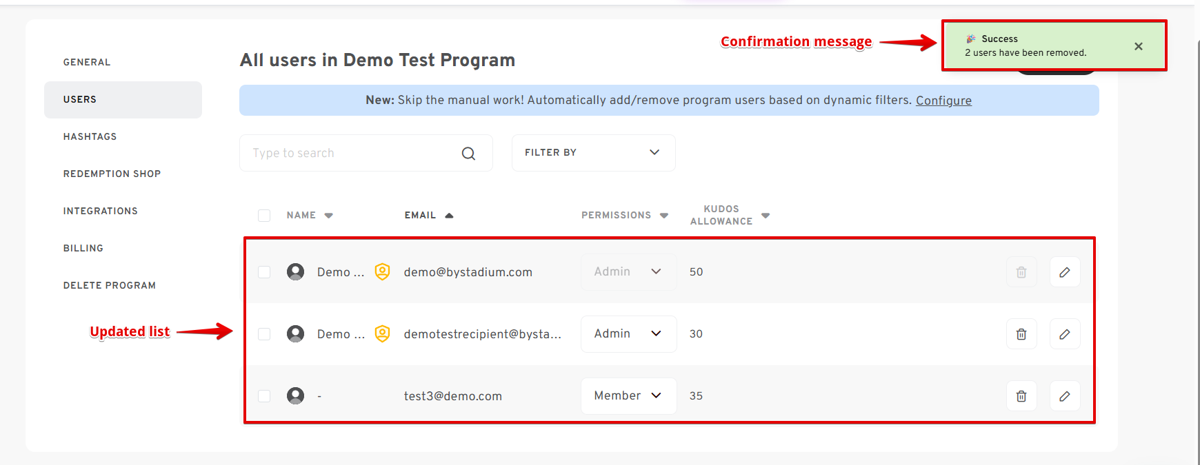 Here's the step-by-step guide on how to delete users from your Kudos Program: