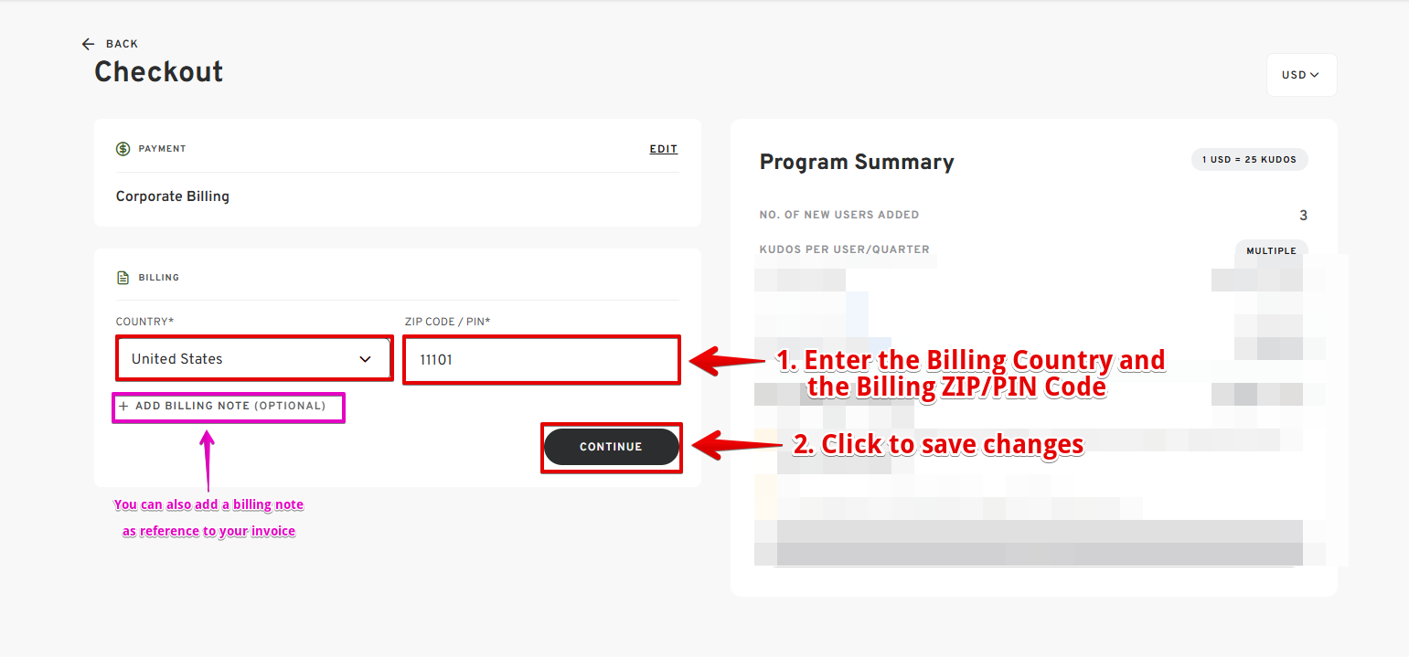 - Add the BILLING COUNTRY and BILLING ZIP CODE.