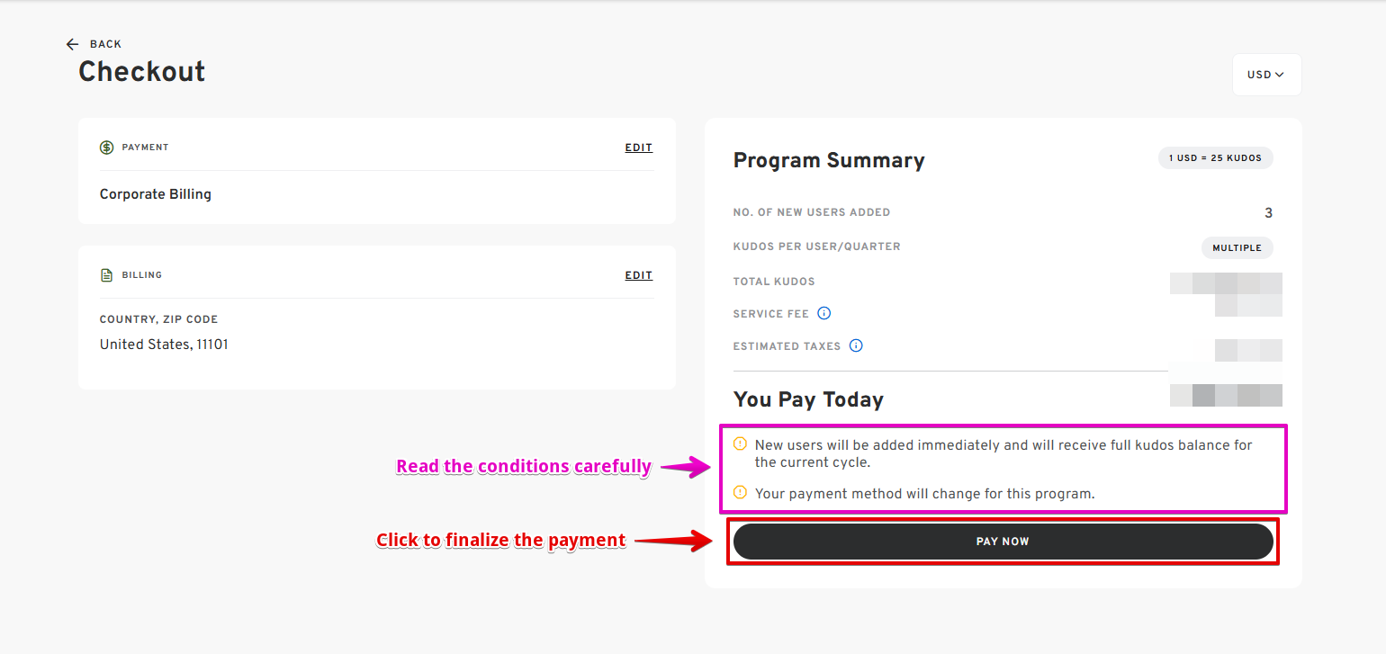 Review Conditions and Finalize Payment