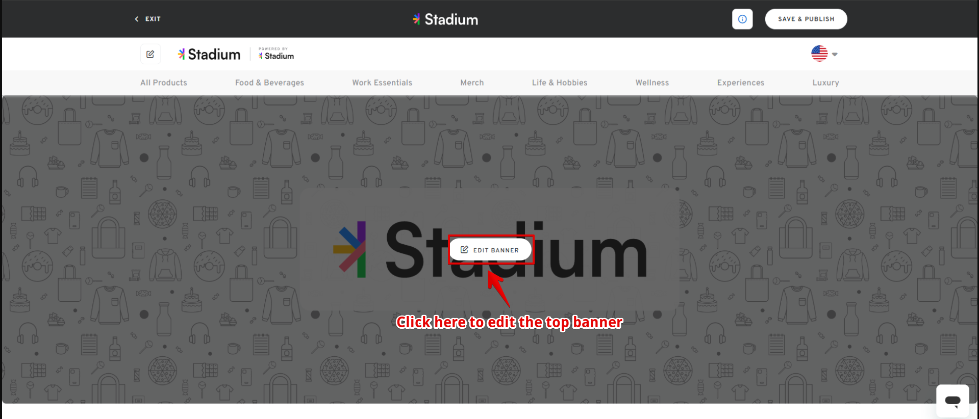 If you do not like the auto-generated banner and also do not have any banners ready, you may utilize our Stadium Library. This consists of different template options that you can use as a top banner for your shop.