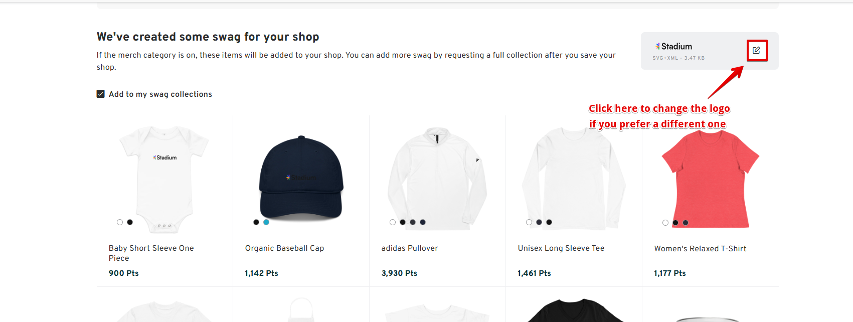 Customizing your Stadium Shop starts with adding the right branding. This article will guide you through the process of adding and editing logos in your Stadium Shop's banner and swag collection. Follow the detailed steps below to customize your shop effectively.