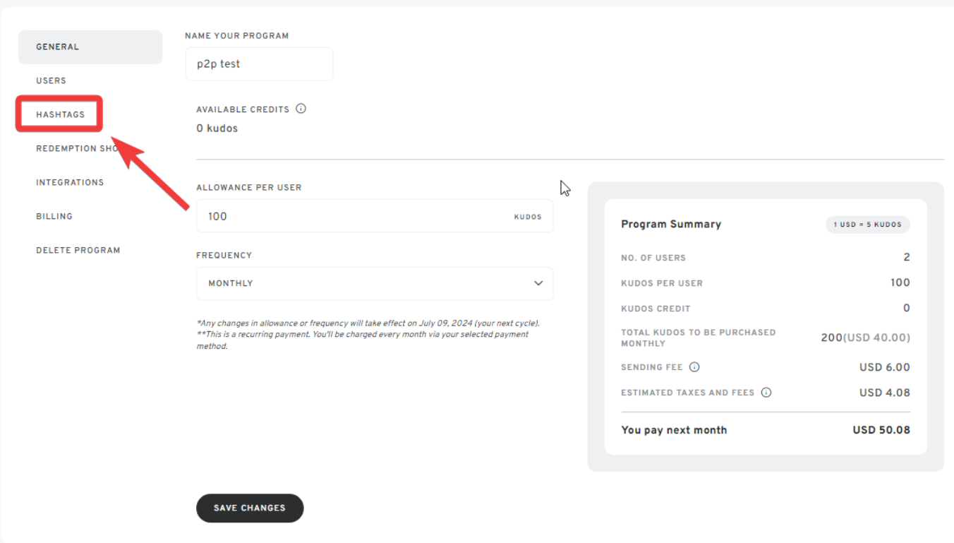 Here is the step-by-step guide to Adding Company Value Hashtags to Your Kudos Program