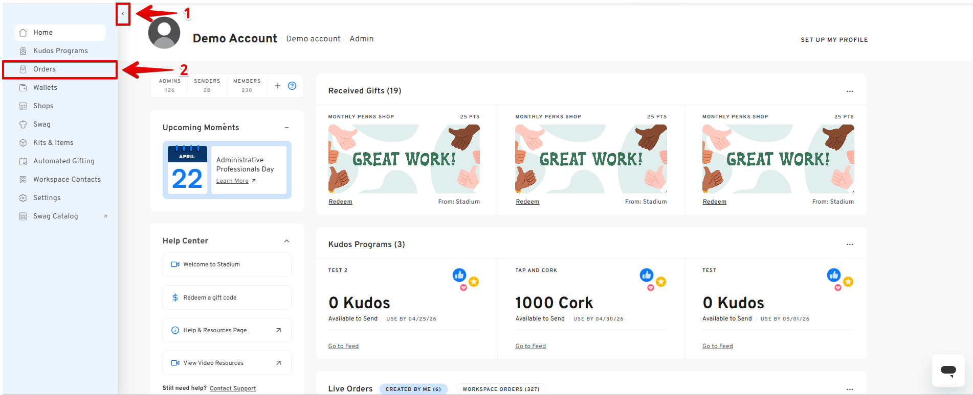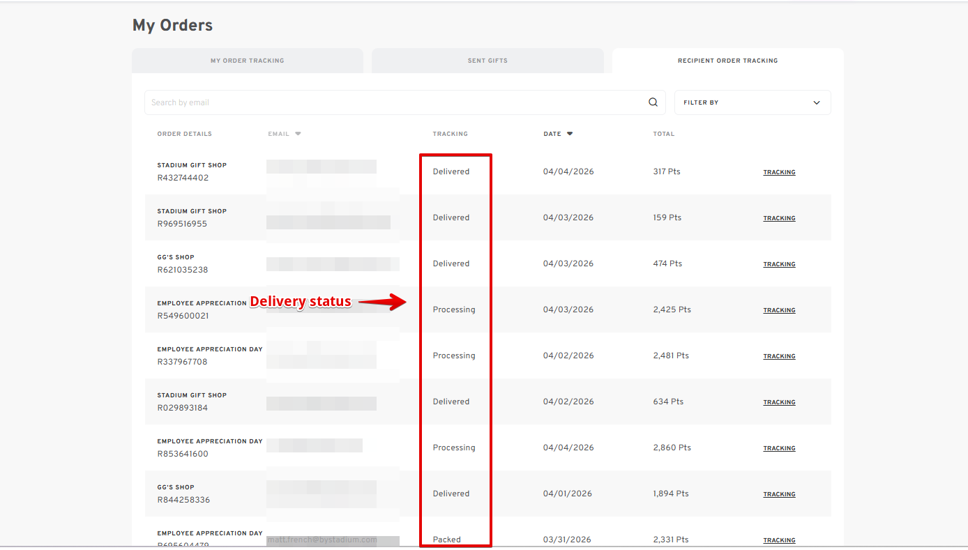 This allows you to easily monitor gift redemptions and track orders in real time.