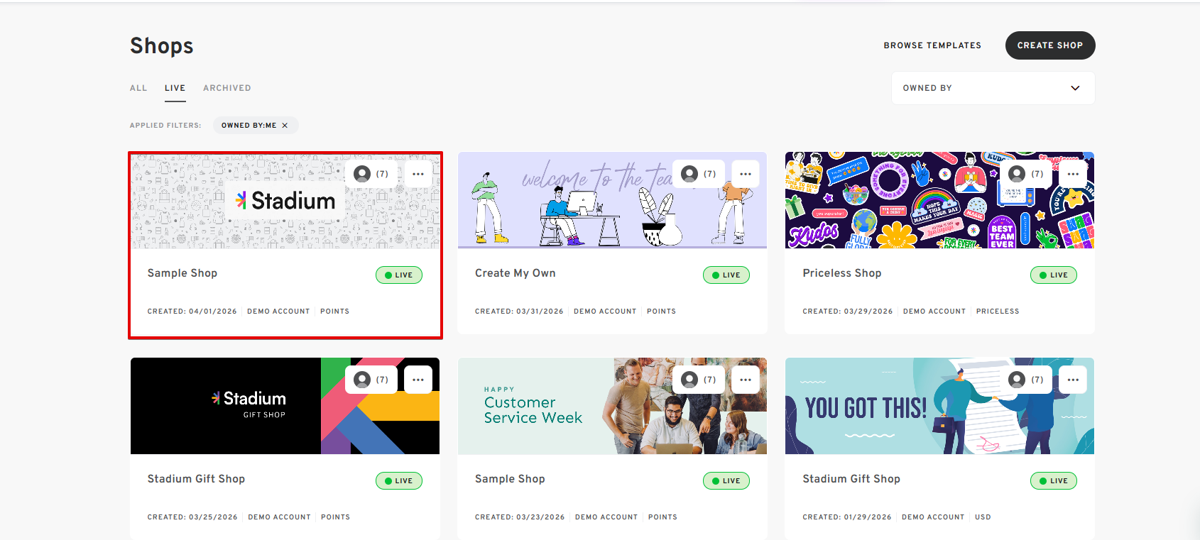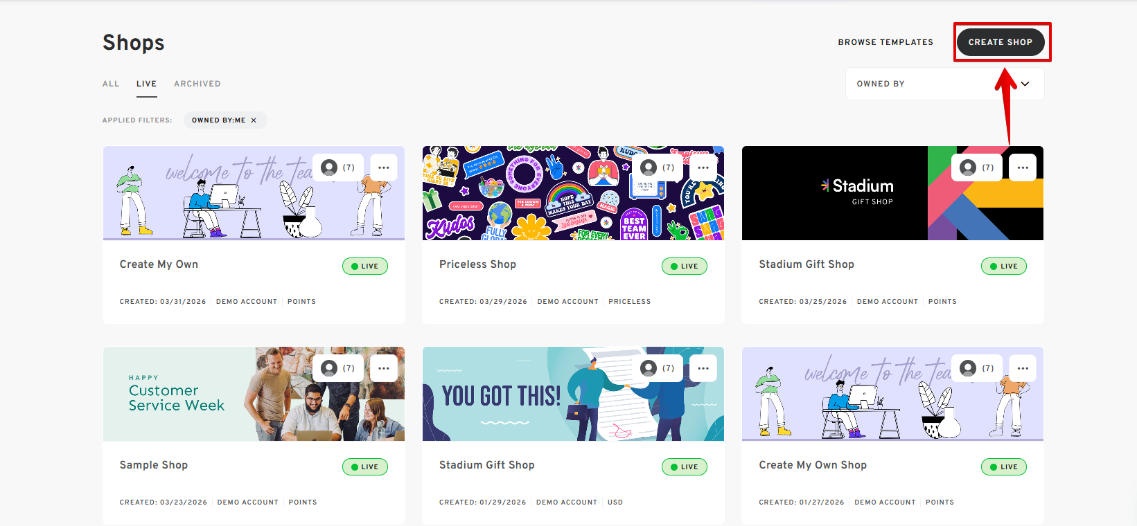 - The newly created shop will appear on the Shops Page.