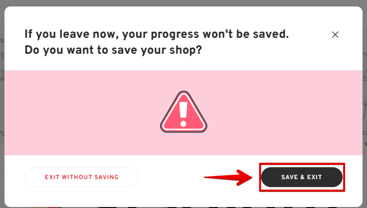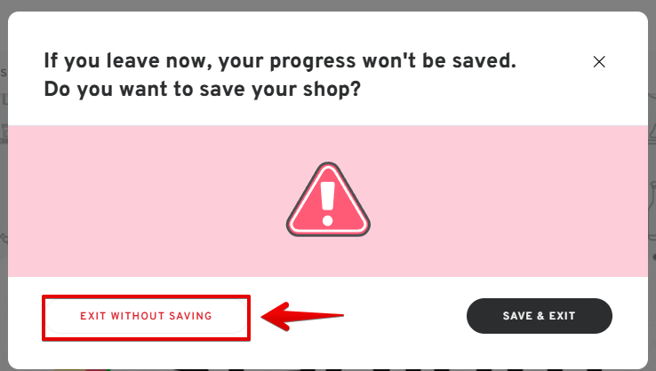 Choosing to exit without saving means that any changes or configurations you have made while setting up your shop will not be saved or applied.
