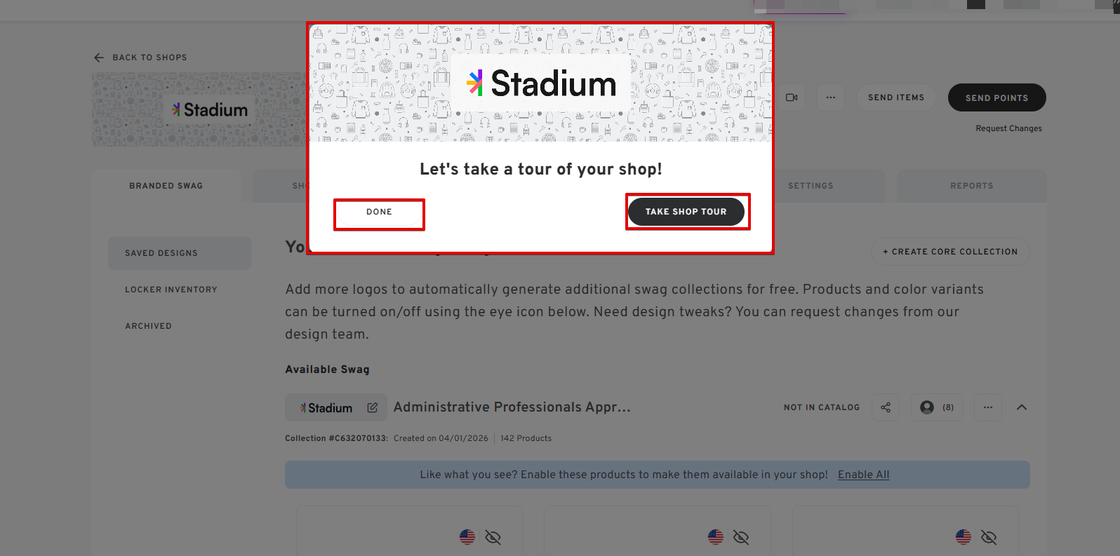 - The mockup for the swag items will also appear here.