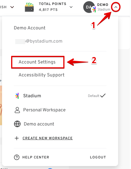 - Once logged in, click the drop-down button next to your profile name. Select "Account Settings" from the options provided.