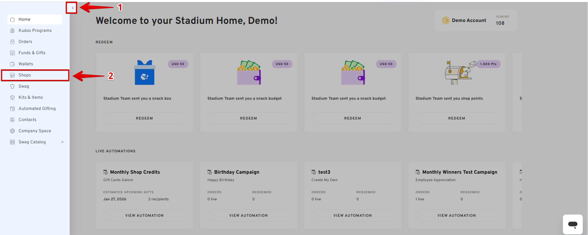 - In the sidebar menu, locate and click on "Shops" to access your shop's page.