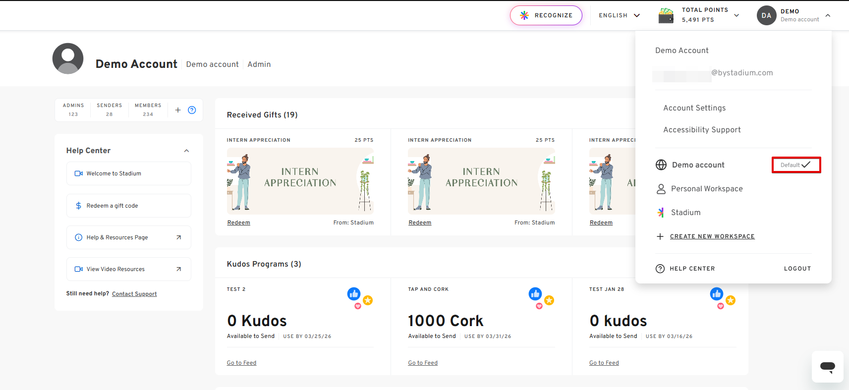 - If needed, you can change your default Workspace anytime from your Account Settings.