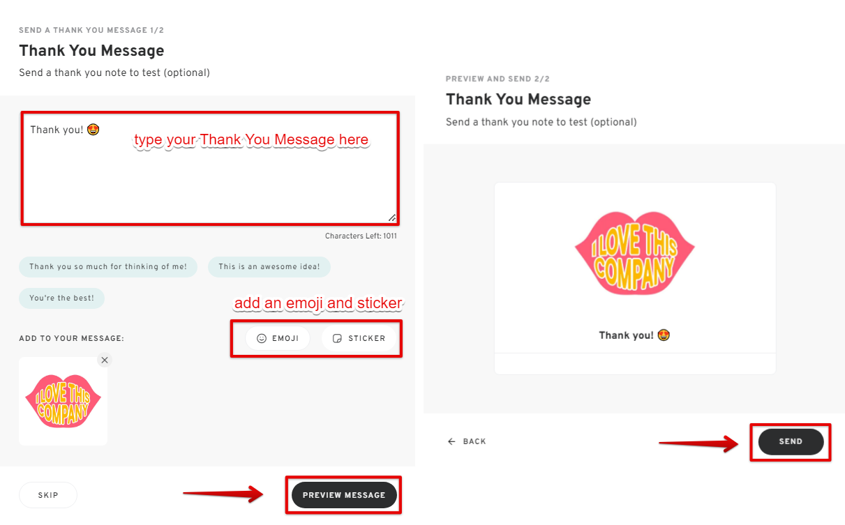 - Enter a Thank-You Message for The Sender.