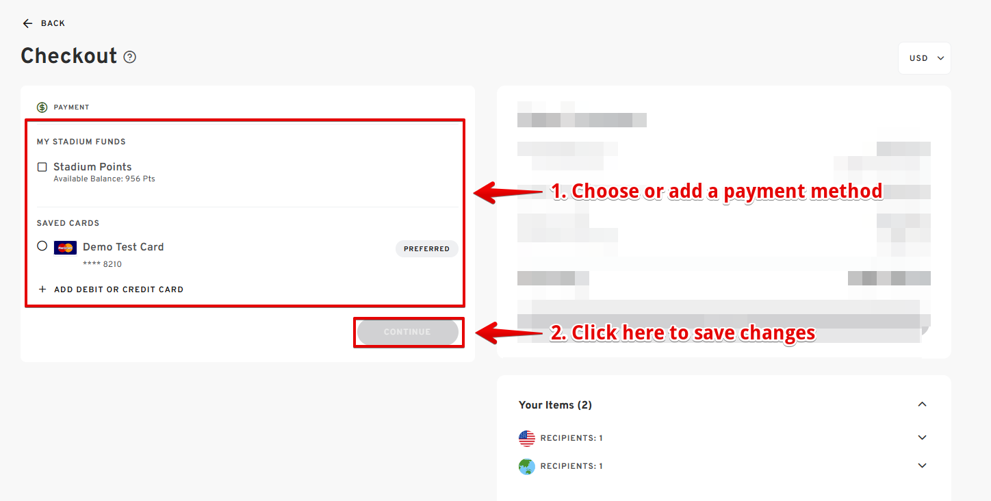 - Choose or add your preferred payment method from the options provided.