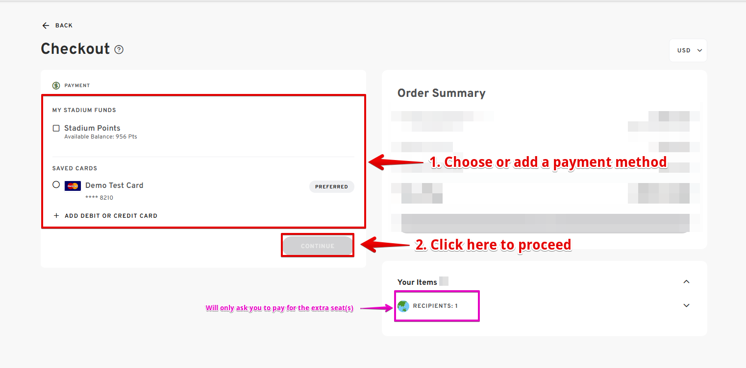 - To proceed, enter the number of extra seats in the RECIPIENT QUANTITY field.