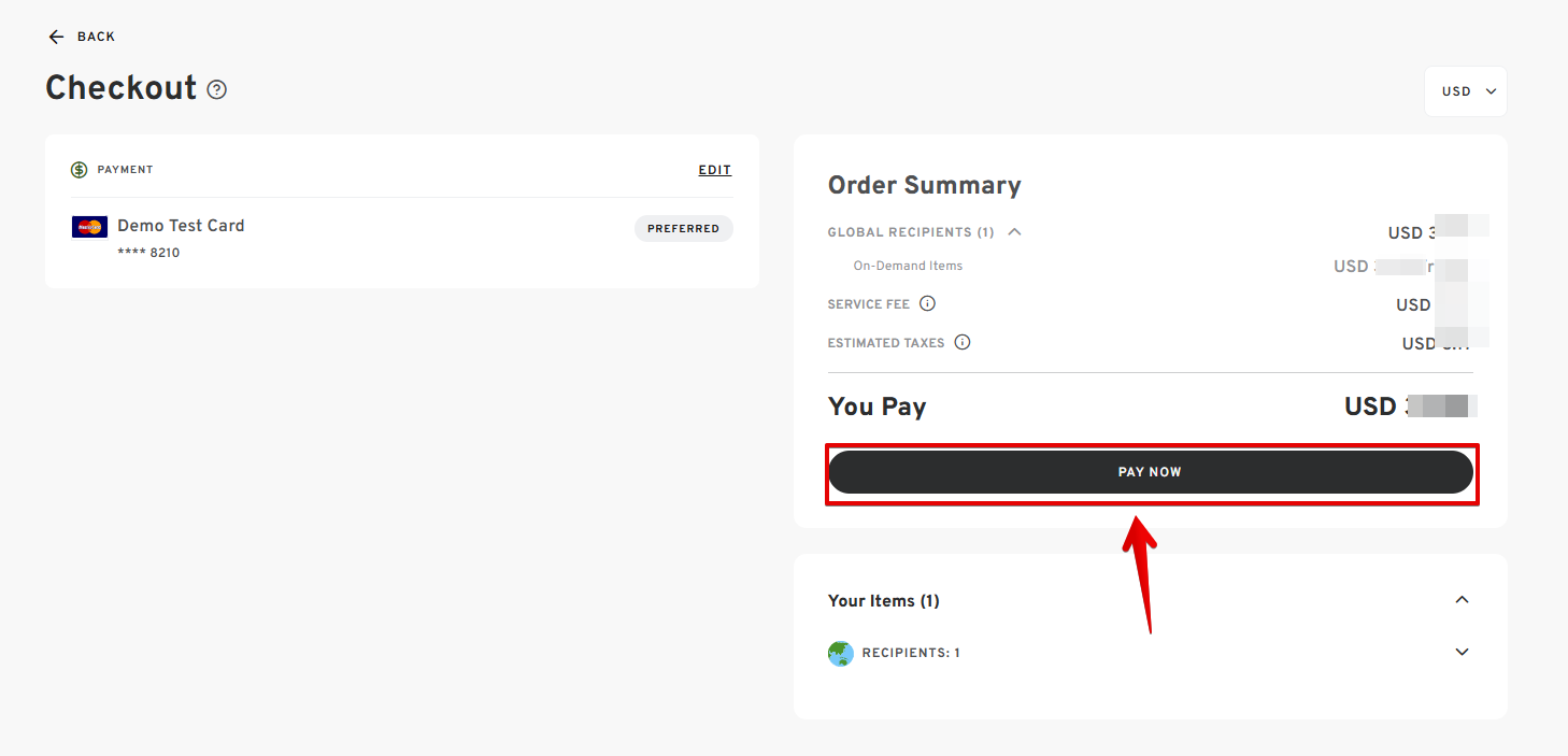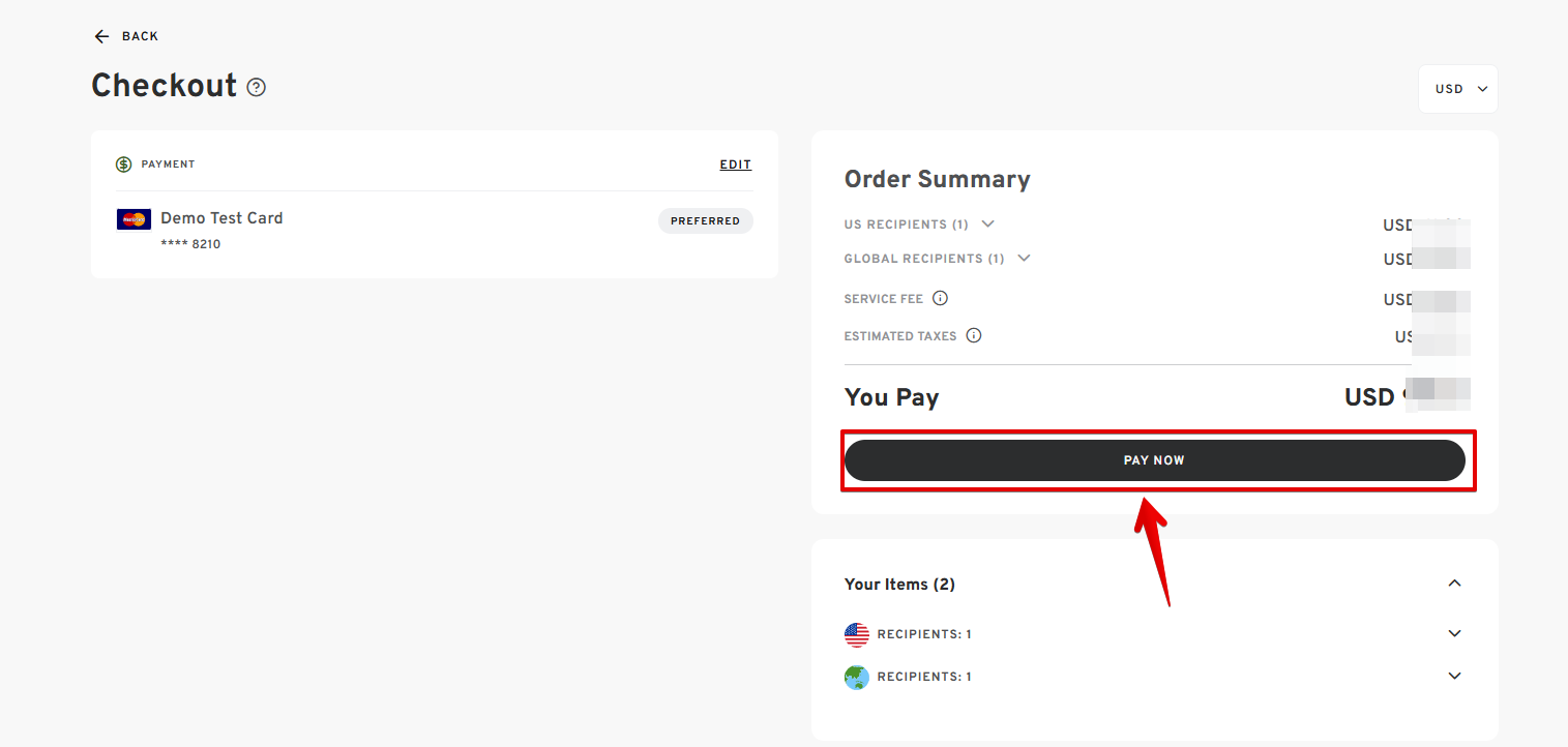 - On the order summary section, click "PAY NOW."