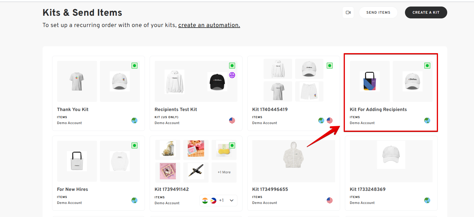 - On the Kits dashboard, select the Kit you wish to add more recipients to.