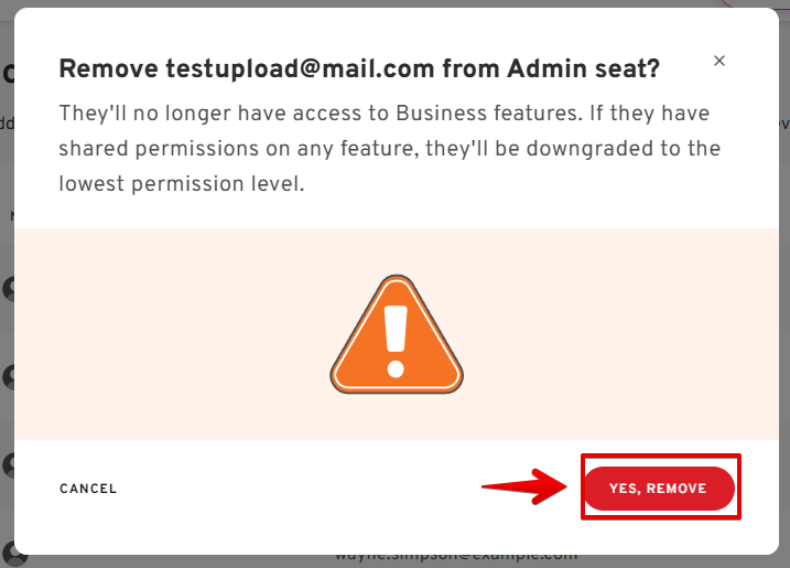 - The same confirmation pop-up will appear. Click YES, REMOVE to proceed.
