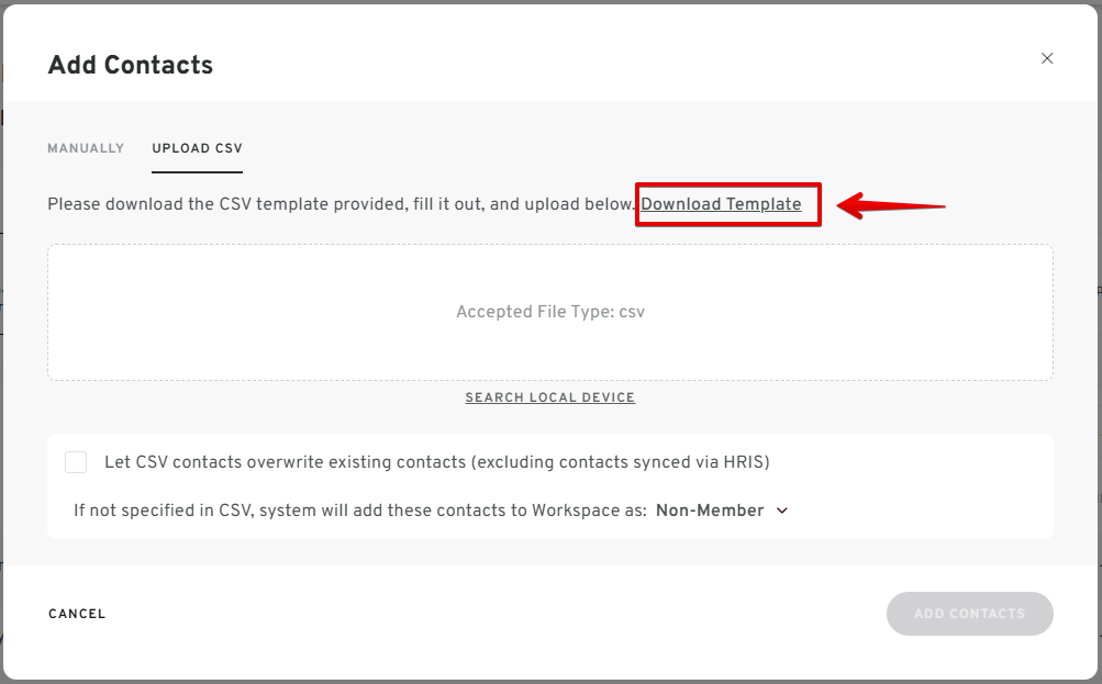 (Optional) Check the box for Let CSV contacts overwrite existing contacts (excluding contacts synced via HRIS) if you want updates to replace current records.