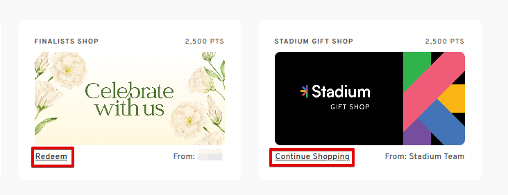 - If you haven't redeemed the gift yet, click the REDEEM button to redeem your points and access the shop catalog.