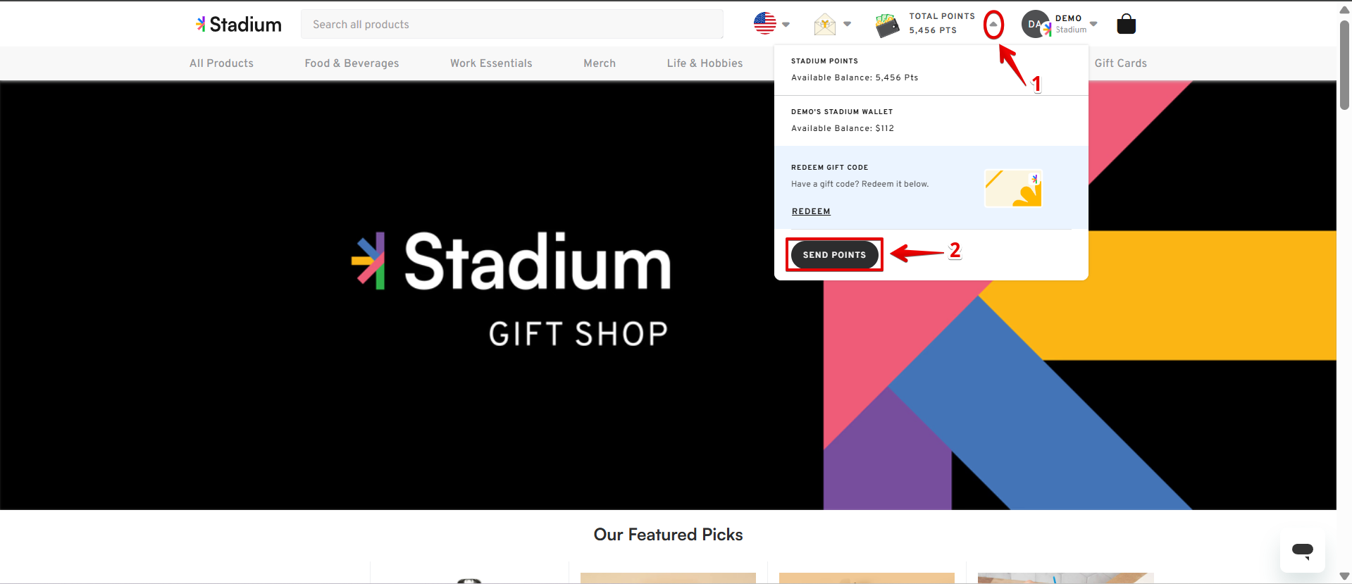 Access to “Send Points” or “Send Credits” depends on User Role and the type of Workspace where the shop was created.