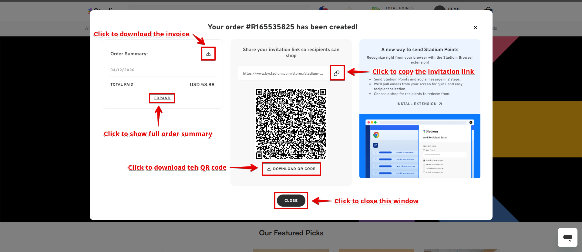 - Senders and Admins can send points after gift redemption, even if they are not added as “shop users.”