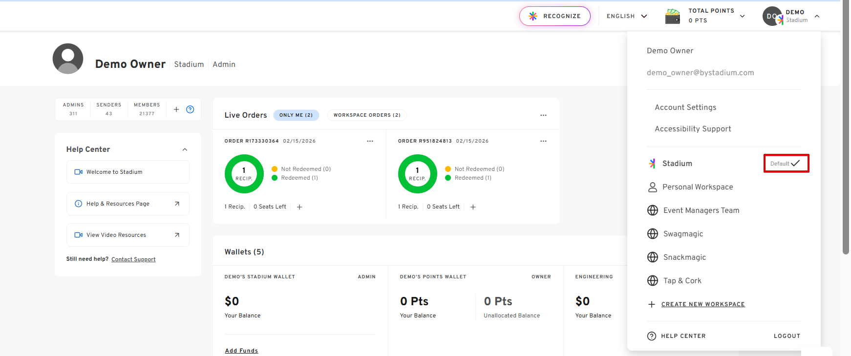 - If needed, you can change your default Workspace anytime from your Account Settings.