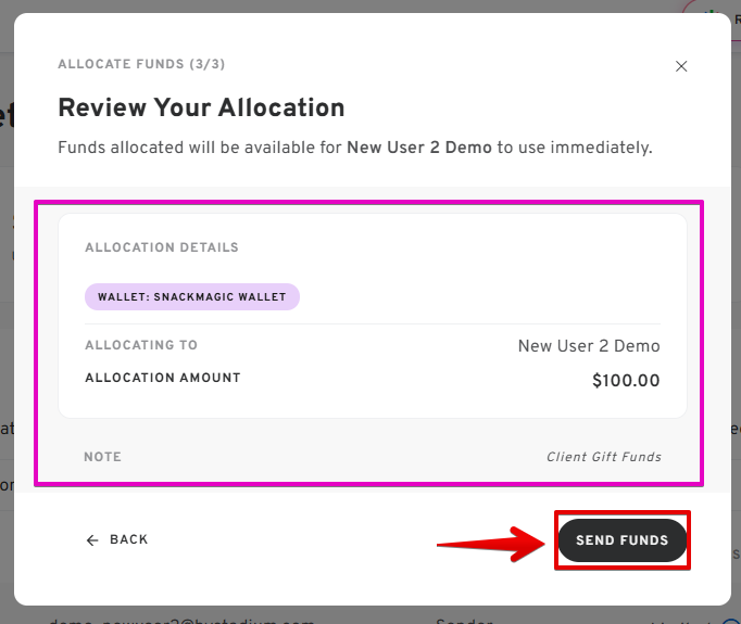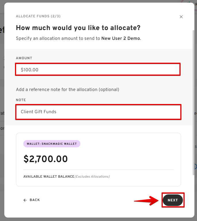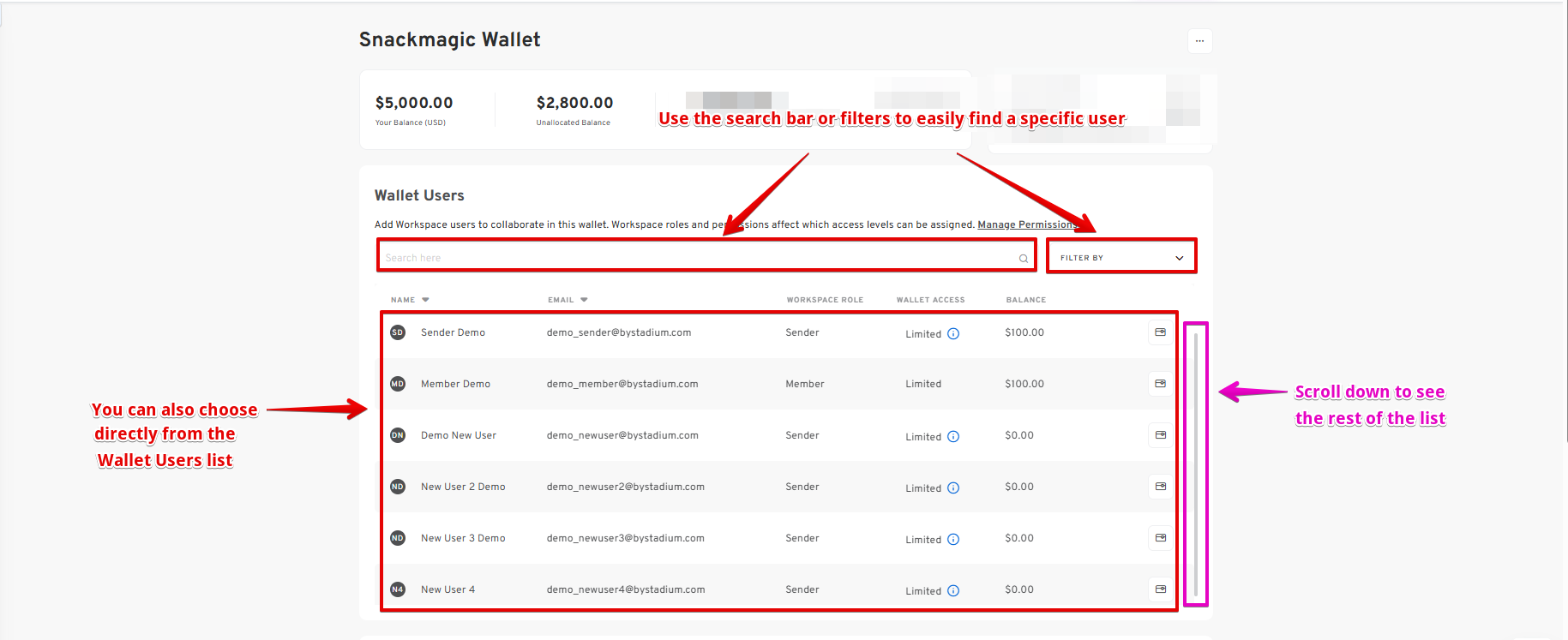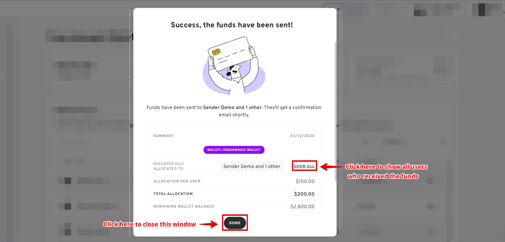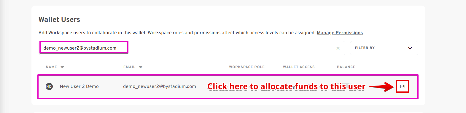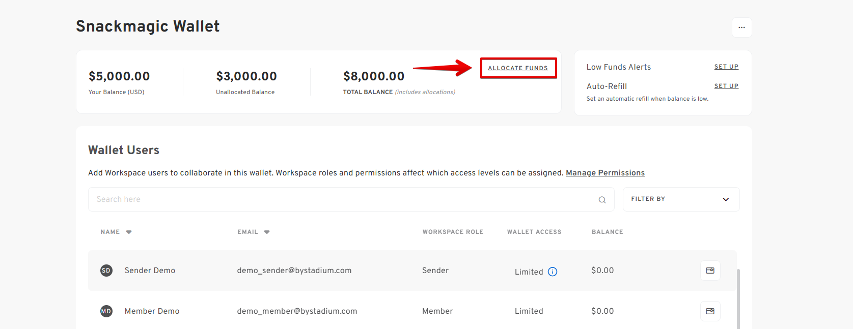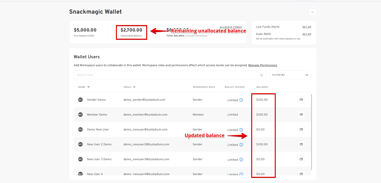 Under Wallet Users, you will see the updated allocated amounts for each user.