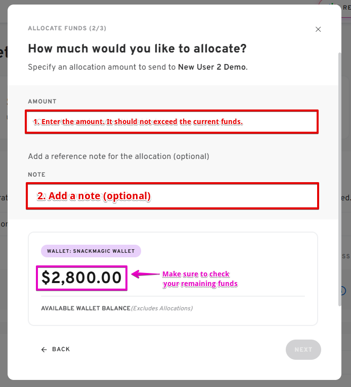 (Adding a note is optional but highly suggested if you wish to track who allocated the amount, for what reason, or any other necessary details needed for this allocation)
