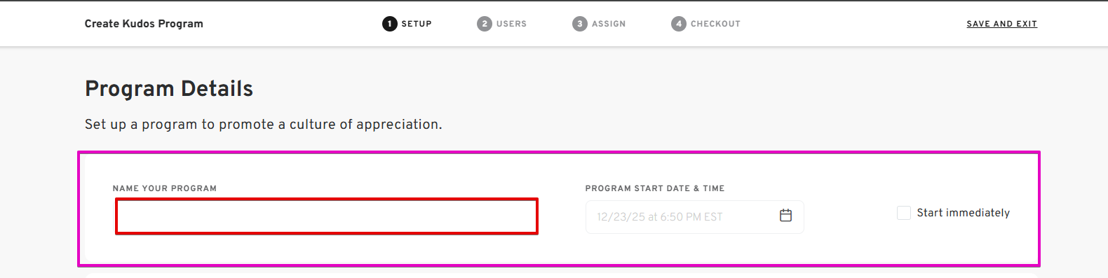 - Click the "Create Kudos Program" button.